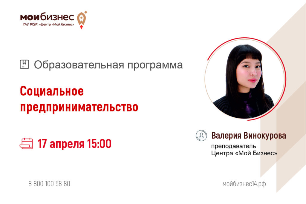 Региональный Центр «Мой бизнес» оказывает поддержку предпринимателям по национальному проекту «Эффективная и конкурентная экономика». Подробнее о мероприятиях, конкурсах, мерах государственной поддержки, выставках вы можете узнать на информационных ресурсах учреждения: Телеграм, ВКонтакте, Одноклассники, на портале Мойбизнес14.рф , а также по телефону горячей линии: 8(800)100-58-80.