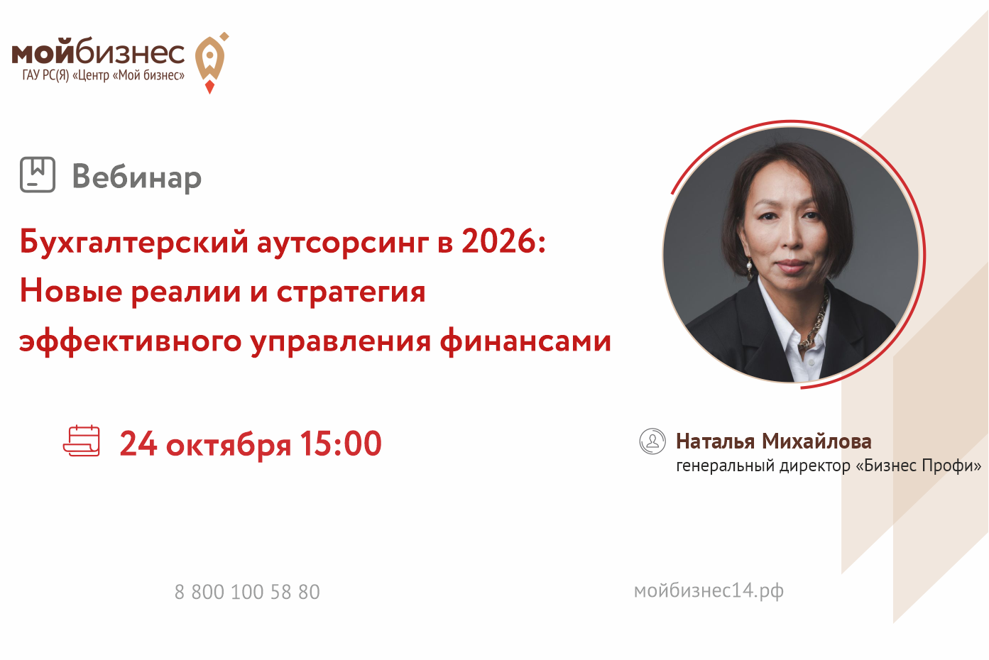 Спикер: Наталья Михайлова, генеральный директор и собственник компании «Бизнес Профи», Заслуженный экономист Республики Саха (Якутия); аттестованный аудитор с 20-летним опытом.