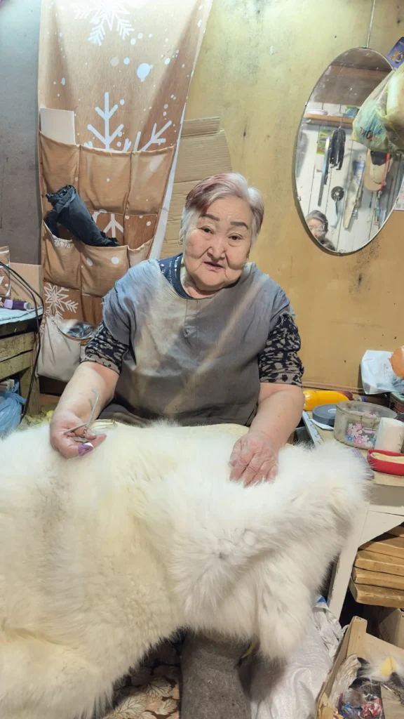 «Тружусь целый год, зимой шью меховую одежду и унты, а летом шью легкие изделия», — говорит мастерица.
