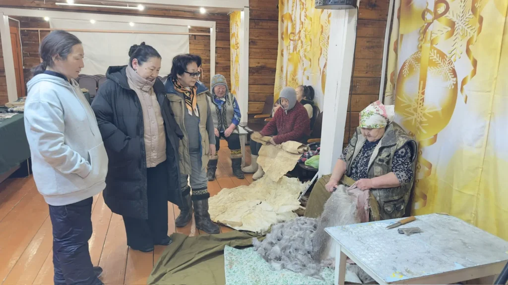 Недавно Елизавета вместе с тремя другими мастерицами объединили свои усилия и открыли небольшой цех в пустующем доме. Они шьют, занимаются выделкой шкур и камусов, используя традиционные народные методы.