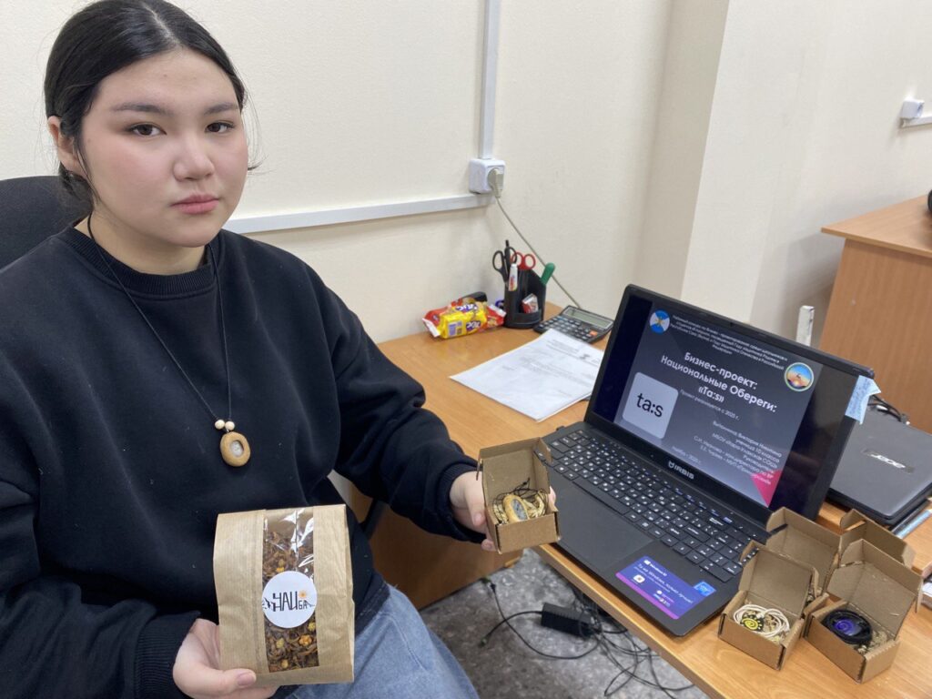 Виктория Никитина, ученица 10 класса, проживает в селе Найба Булунского улуса, что находится за Полярным кругом на берегу моря Лаптевых. Её вдохновляет творчество: она создаёт обереги из натуральных камней, которые собирает на побережье родного моря. Для упаковки изделий Виктория использует натуральный мох, придавая им особую природную атмосферу.