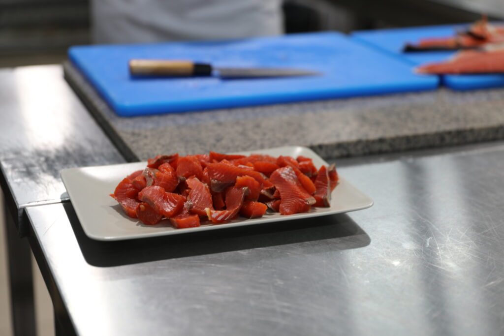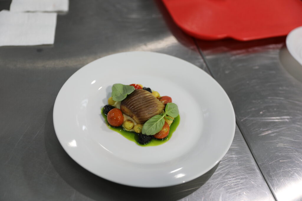 Участникам мастер-класса были представлены два фирменных блюда мастера: камчатская нерка слабой соли с клоповкой, филе крыла ската с картофелем нуазет и пюре из сельдерея. В процессе приготовления блюд шефу помогали участники мероприятия. Он показал, как разделывать экзотическую рыбу, мясо ската, украшать блюдо перед подачей, рассказал, как определять свежесть тех или иных продуктов. В ходе занятия желающие применили технику вырезания картошки французским ножом в качестве декора.